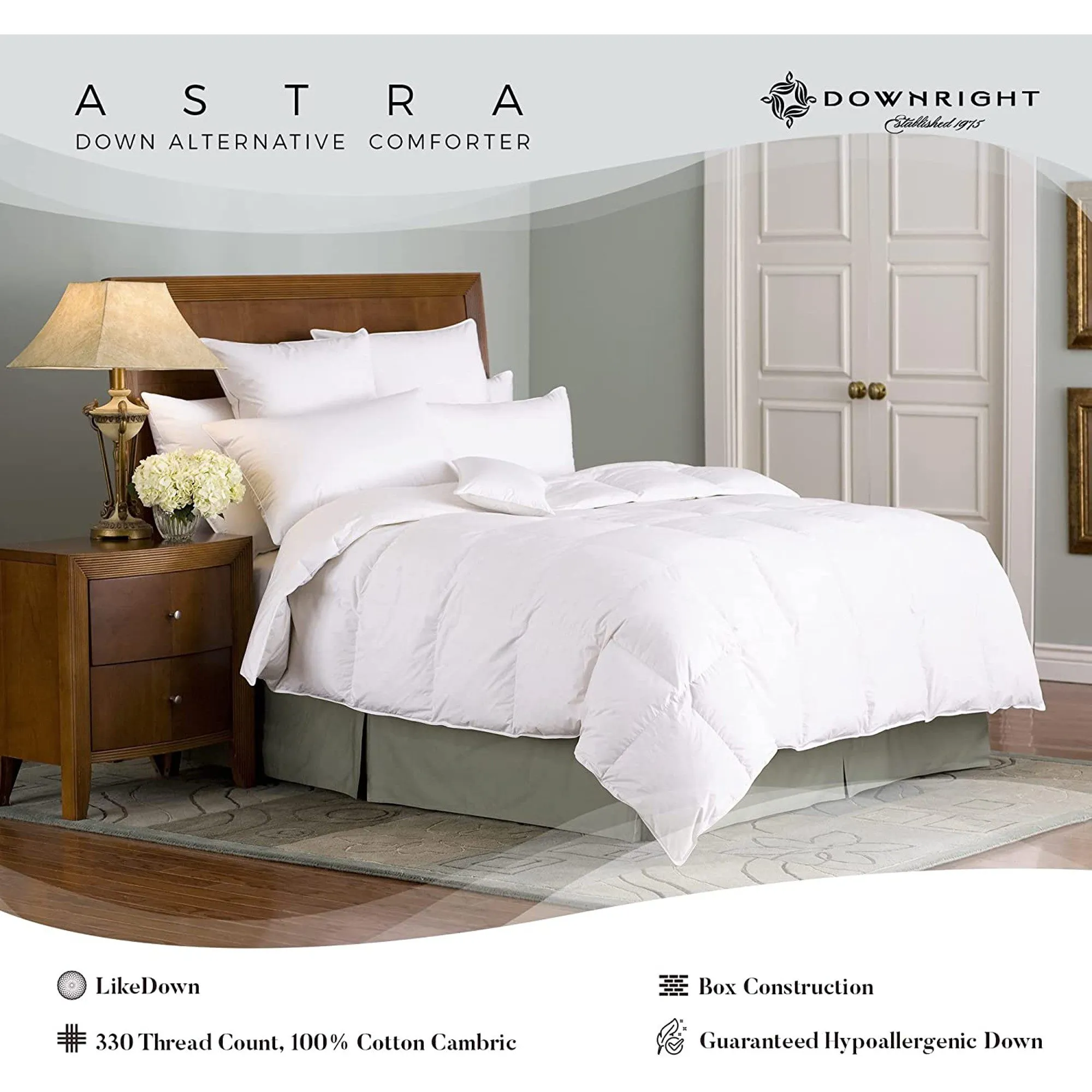 Filled with Comforel fiber, an Astra comforter will closely imitate the warmth and feel of natural down. You can now enjoy a high degree of comfort in an easy-care comforter that is moderately priced, absolutely hypoallergenic, making it ideal even for sleepers that are allergy-prone. You’ll go to bed feeling secure and wake up feeling refreshed.