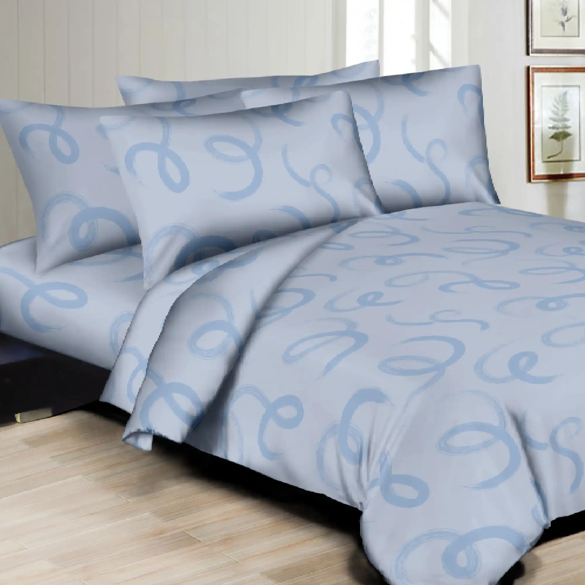 8 pc Duvet Set features Beautiful printed design, High quality Poly/Cotton Sateen, 300 thread count, Machine washable, easy care. Button closure at foot of Duvet cover.
