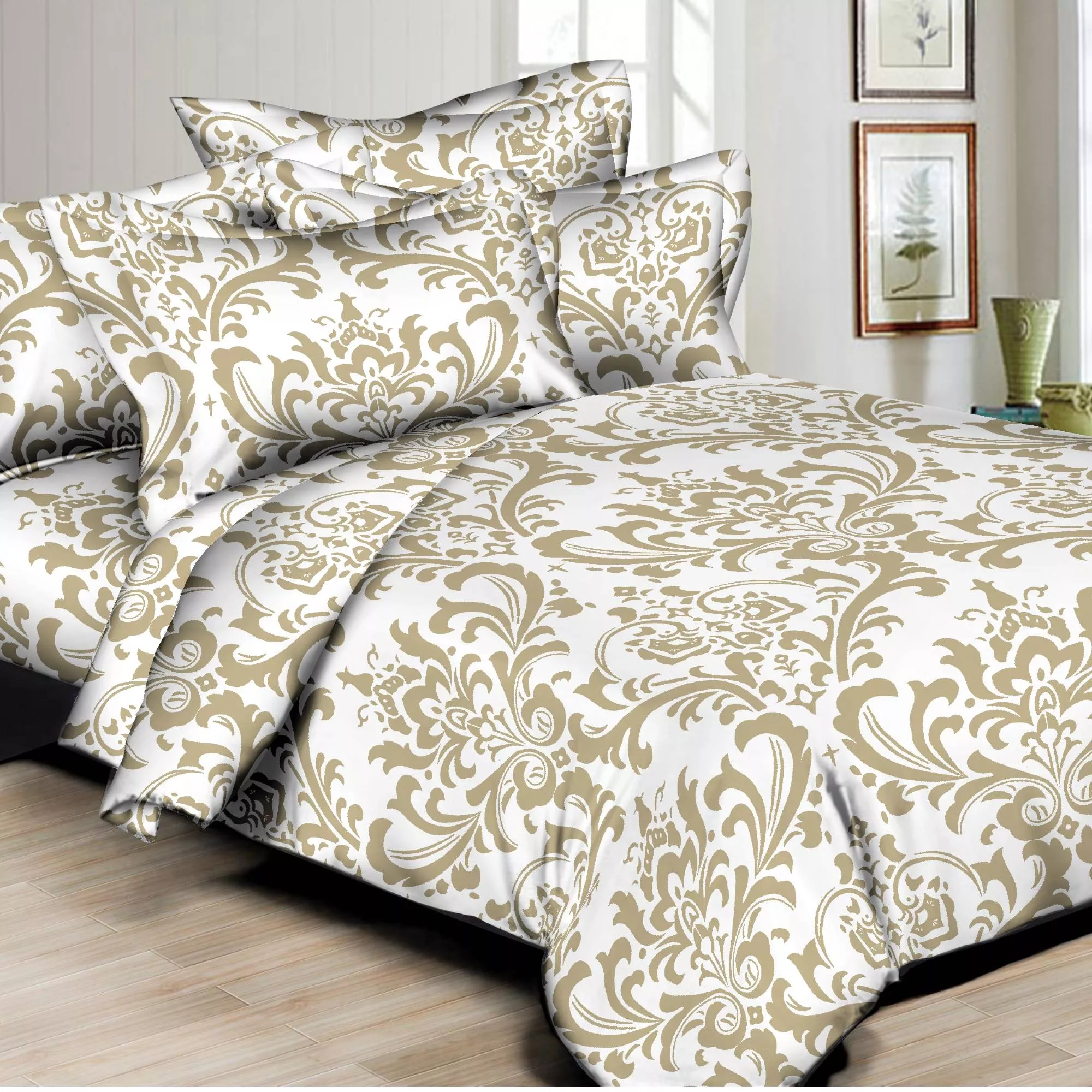 8 pc Duvet Set features Beautiful printed design, High quality 100% Cotton Sateen, 300 thread count, Reversible Duvet cover with coordinating sheets and envelopes. Machine washable, easy care wrinkle free cotton. Zipper closure at foot of Duvet cover.