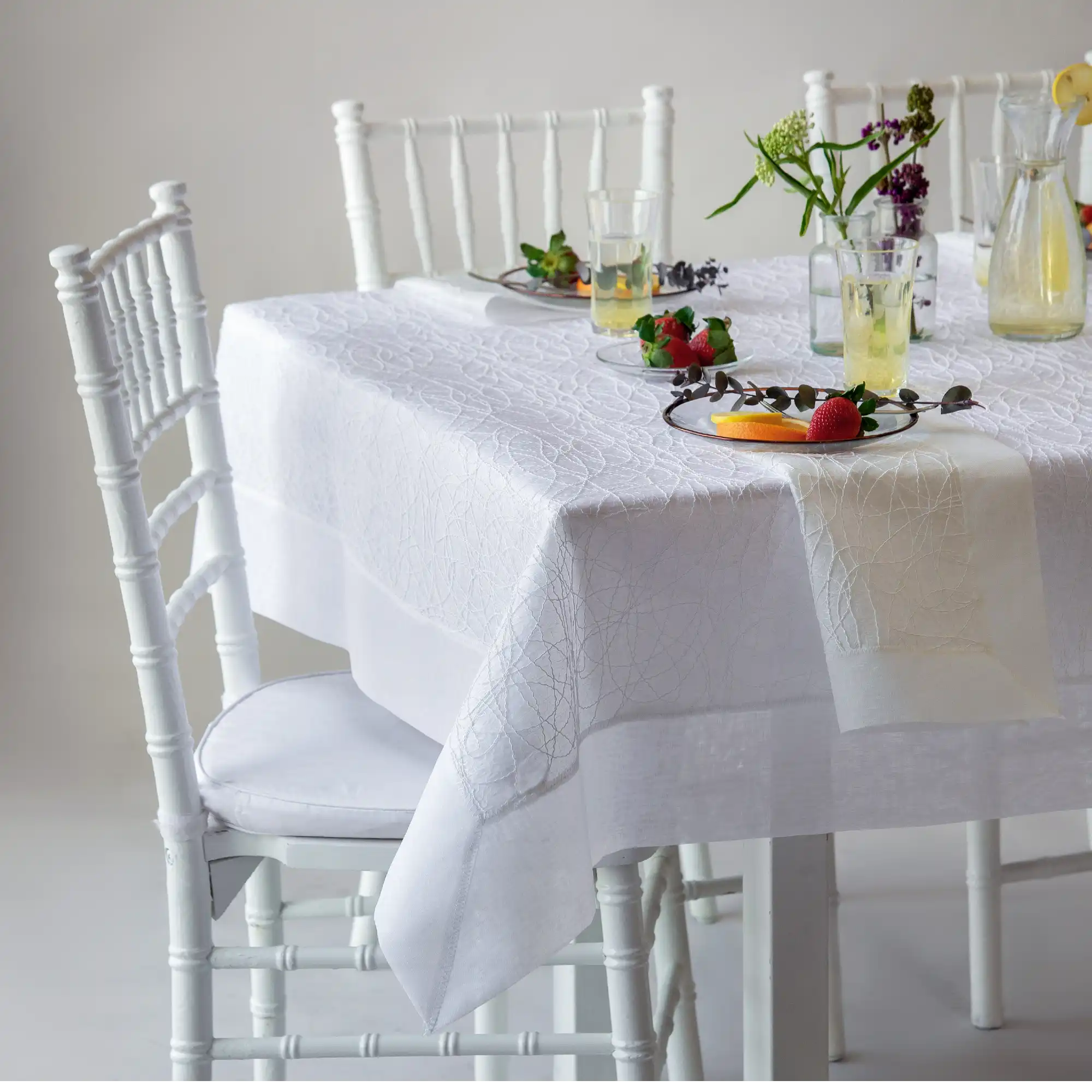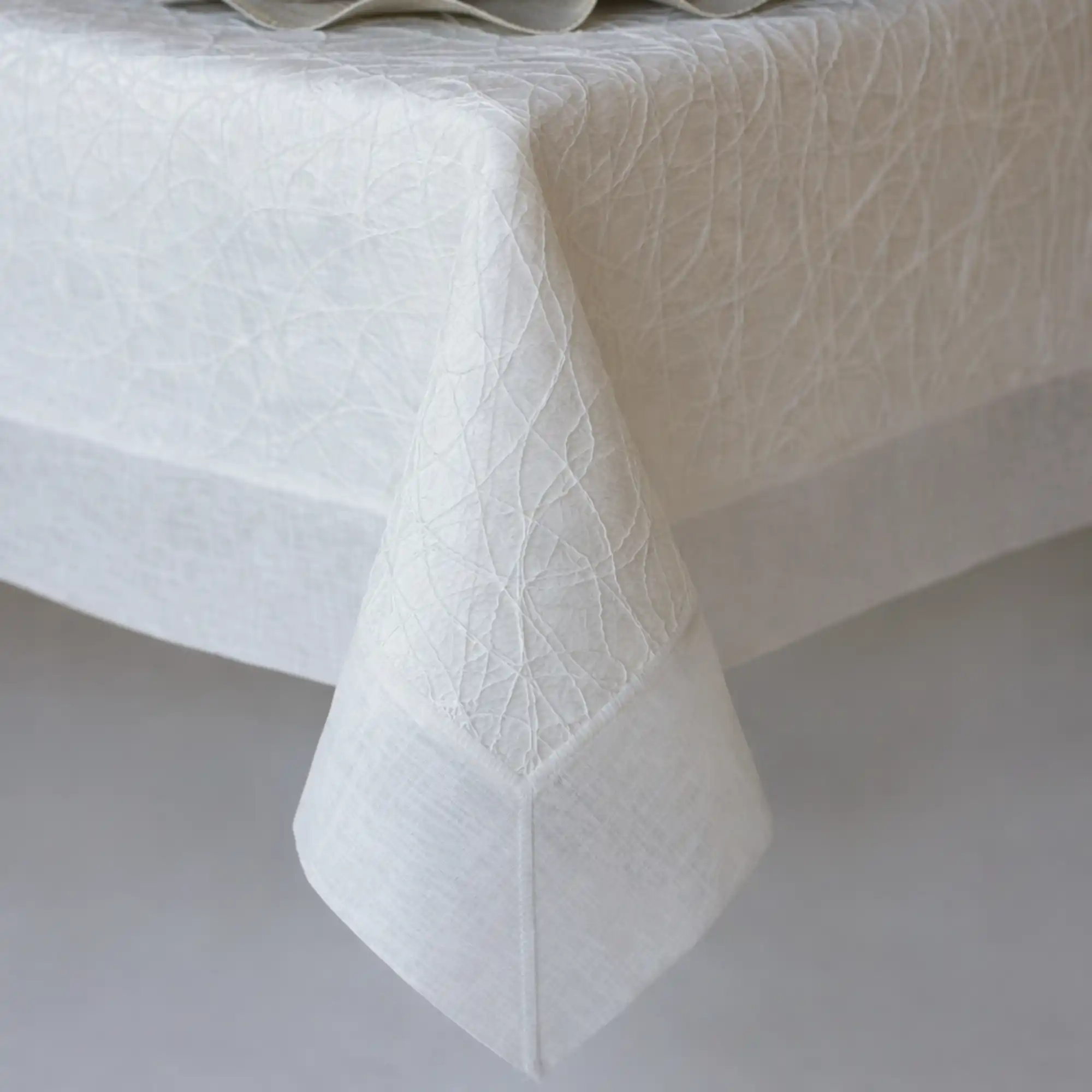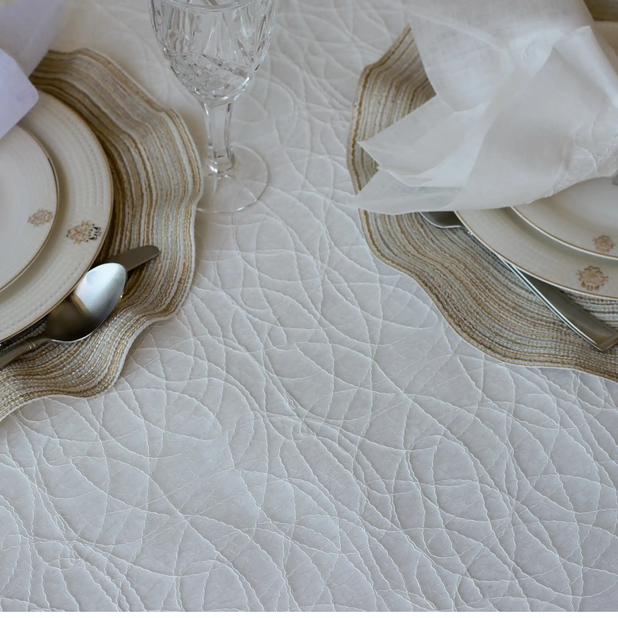 Create a modern luxurious tables cape with this high-end Tablecloth. Beautiful Design made with embossed threads and border to finishing.