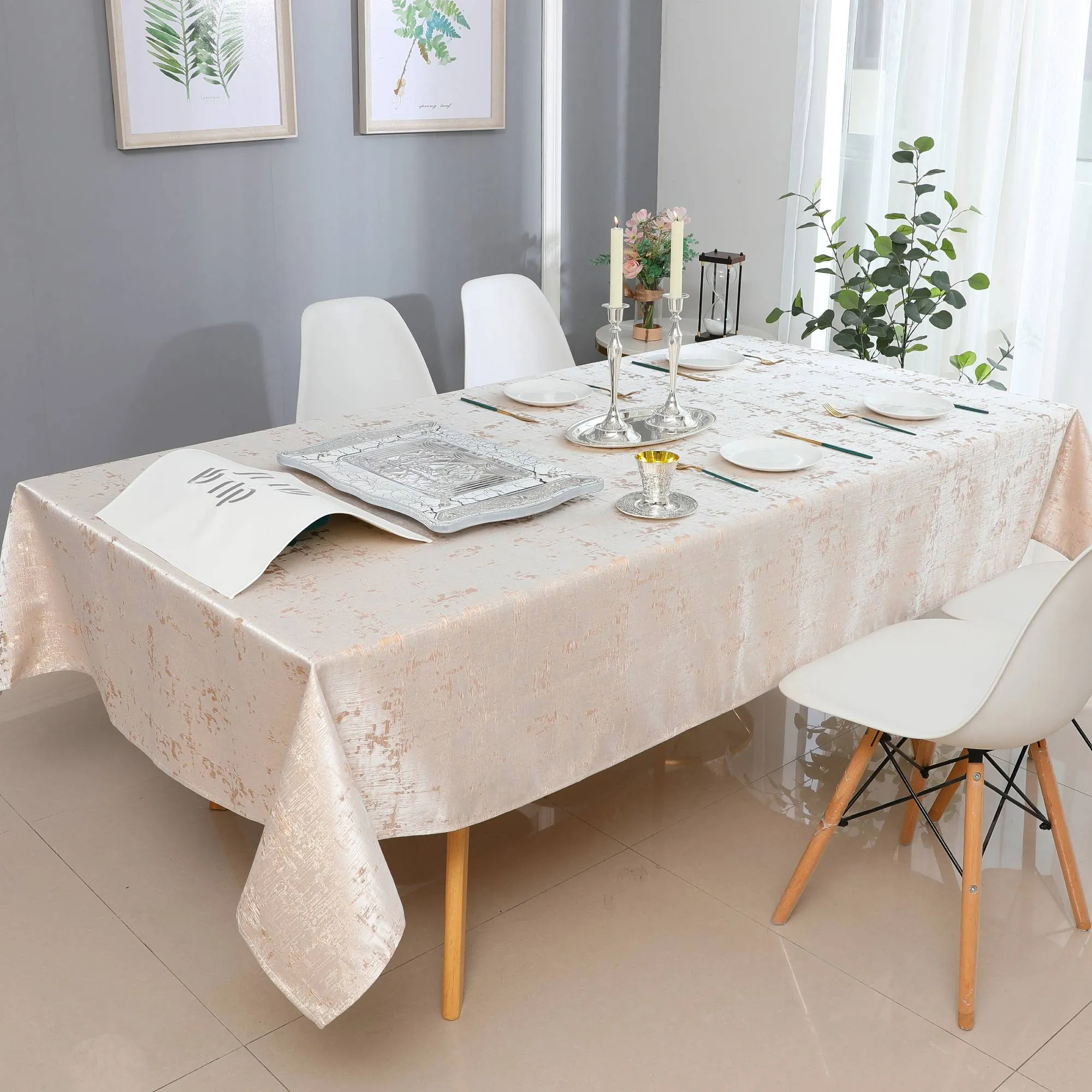 Create a modern luxurious table with this high-end Tablecloth. Beautiful Design made from exceptional quality fabric. Machine washable, easy care.