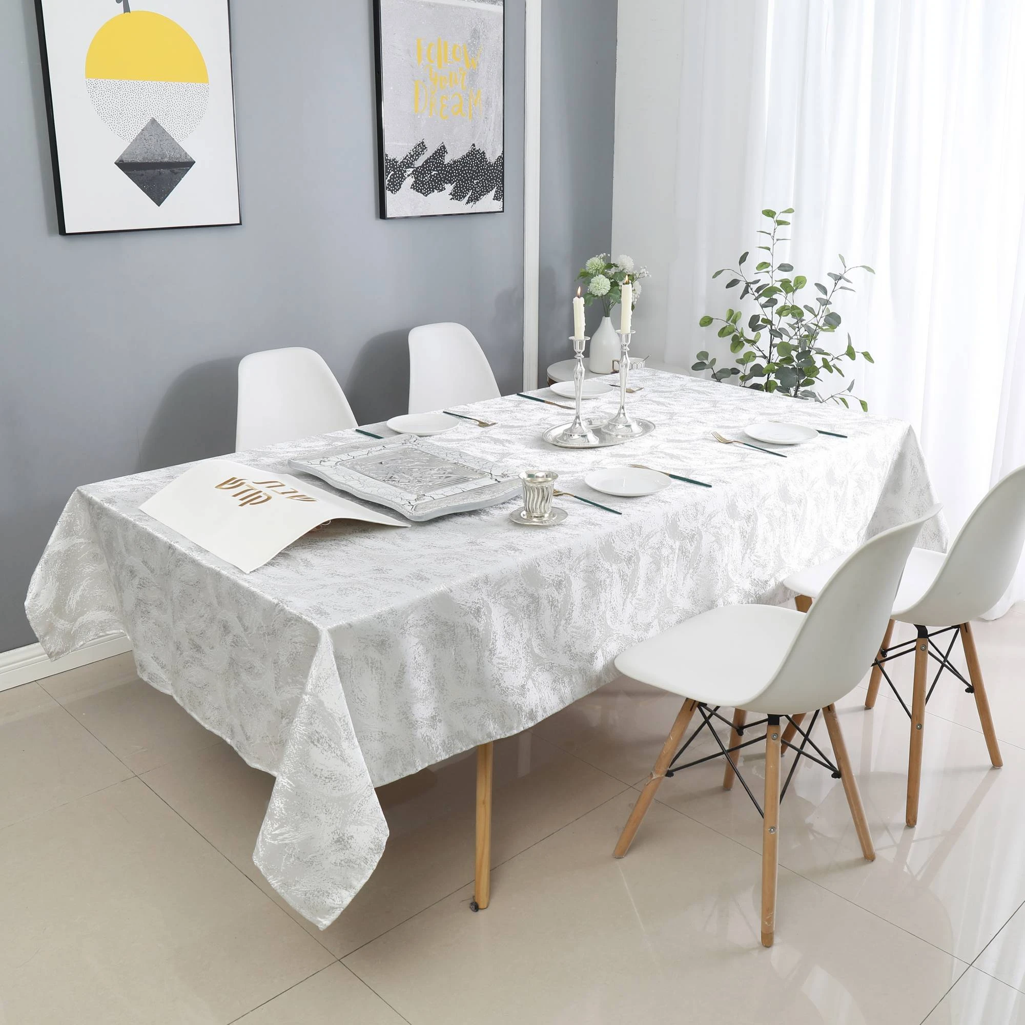 Create a modern luxurious table with this high-end Tablecloth. Beautiful Design made from exceptional quality fabric. Machine washable, easy care.