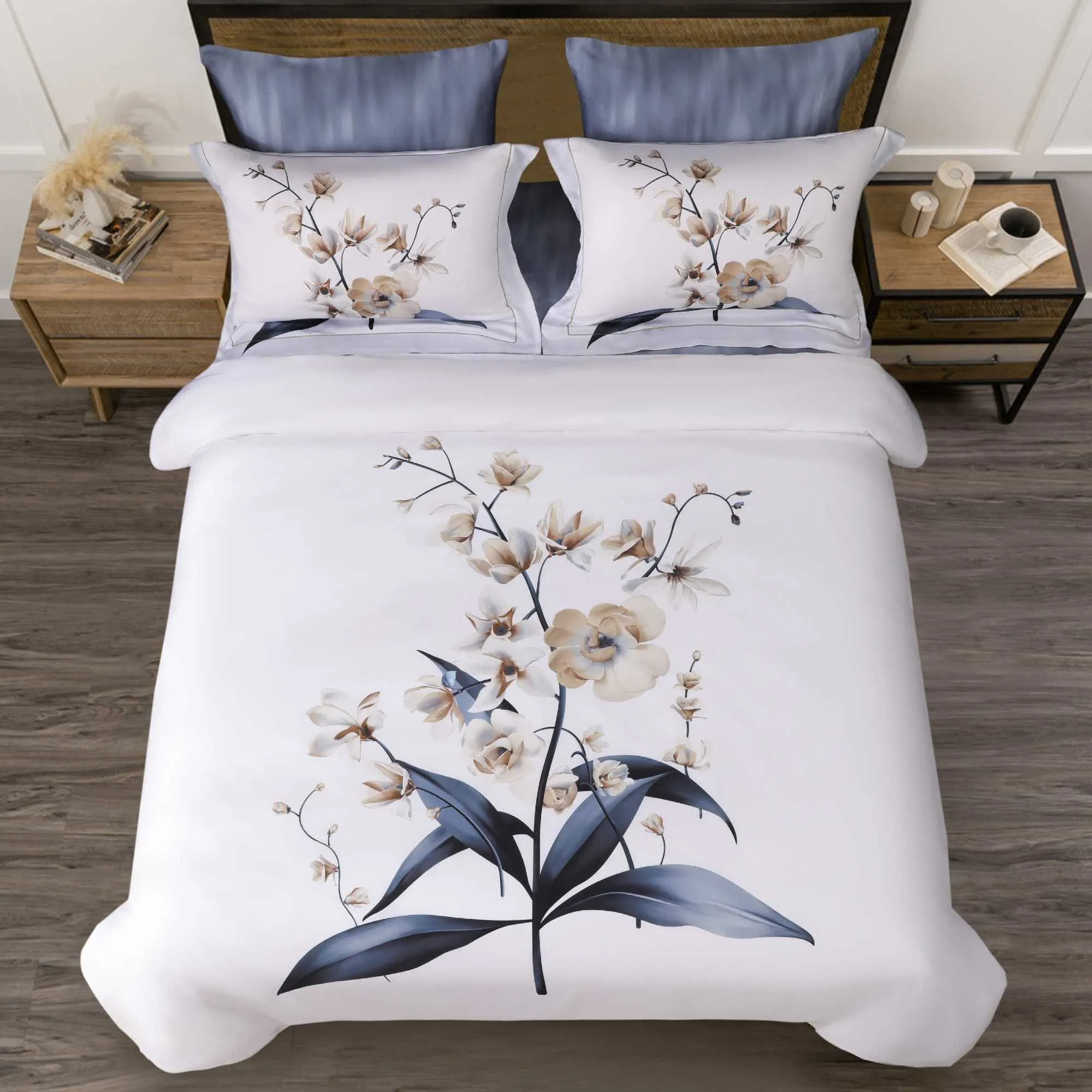 Luxurious 8 pc Duvet Set features Beautiful printed design, High quality 100% Cotton Sateen, 400+ thread count, Reversable Duvet cover with coordinating sheets and envelopes. Machine washable, easy care wrinkle free cotton. Zipper closure at foot of duvet cover and pillow shams.