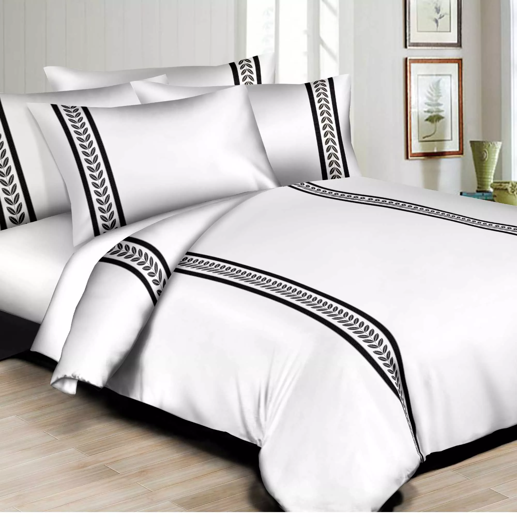 8 pc Duvet Set features Beautiful printed design, High quality 100% Cotton Sateen, 300 thread count, Reversible Duvet cover with coordinating sheets and envelopes. Machine washable, easy care wrinkle free cotton. Zipper closure at foot of Duvet cover.