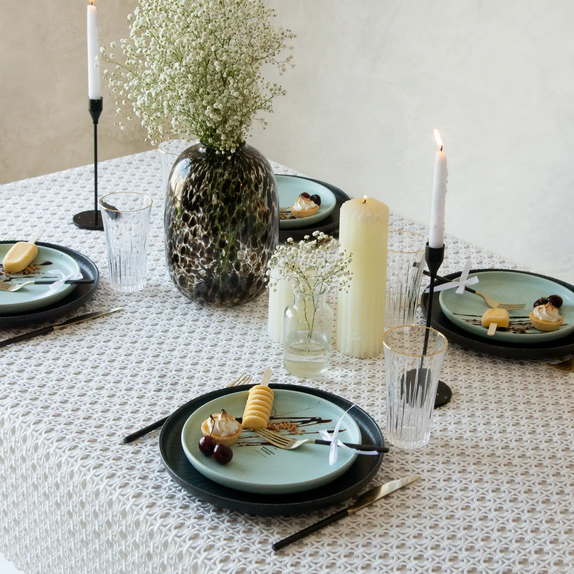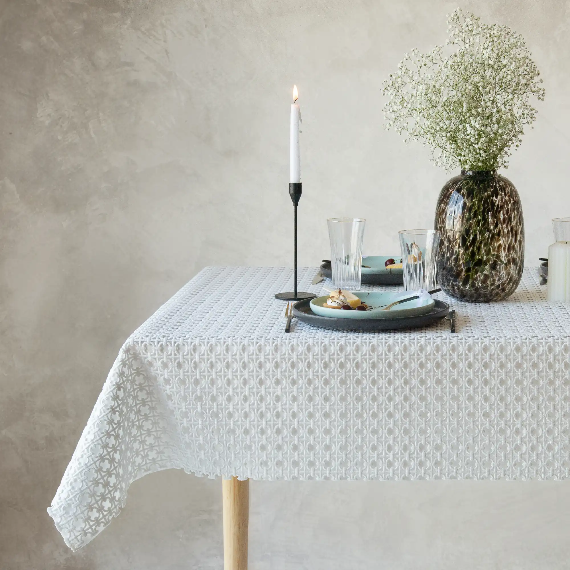Deck your table with this breathtaking lace tablecloth. Now with the pre-lined designs to make your life simpler. You can add luxury and drama to your table styling with endless decor options.